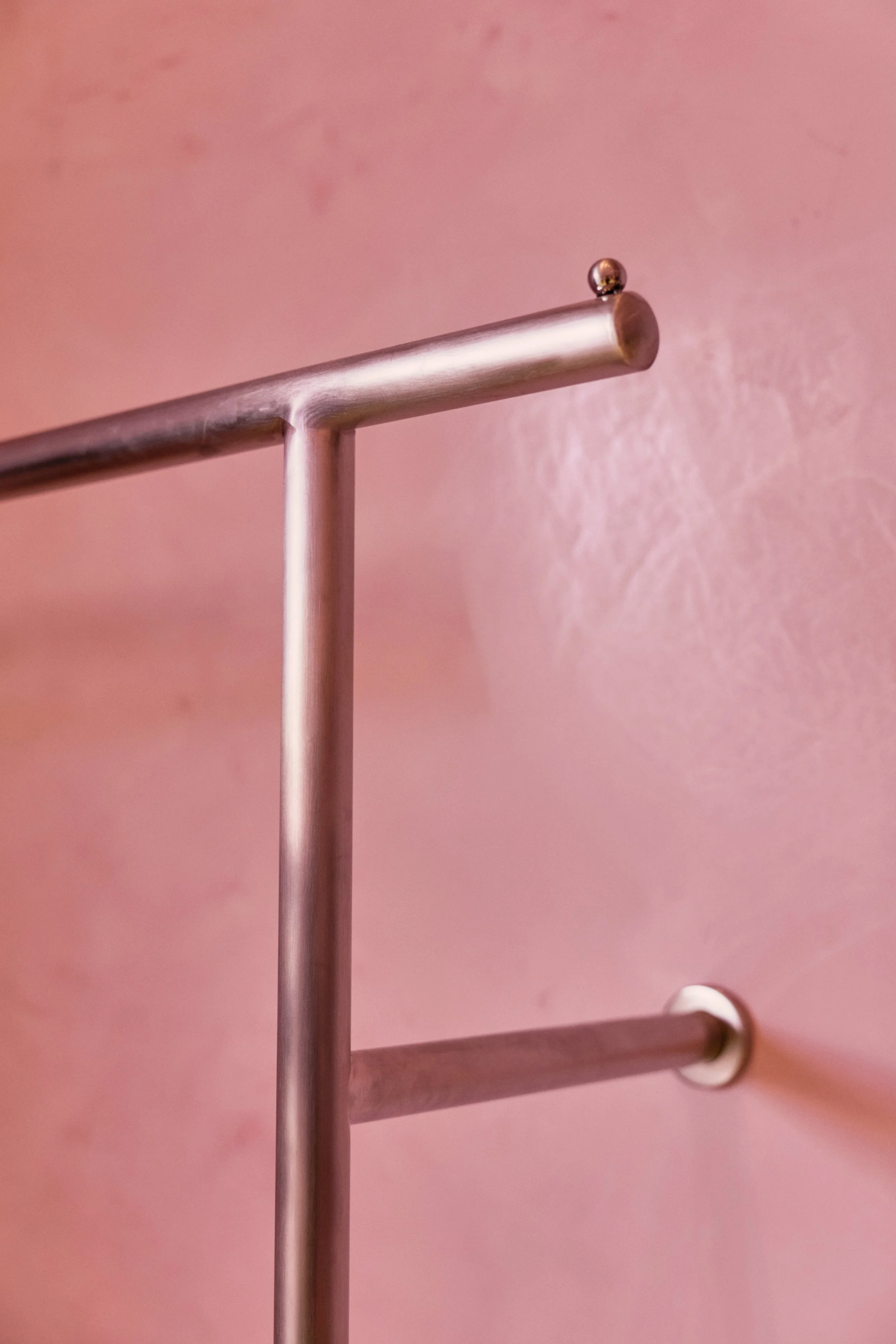 These stand-alone wall racks are designed to fit seamlessly into the wall, functioning as an integrated, built-in display feature. Made from stainless steel.