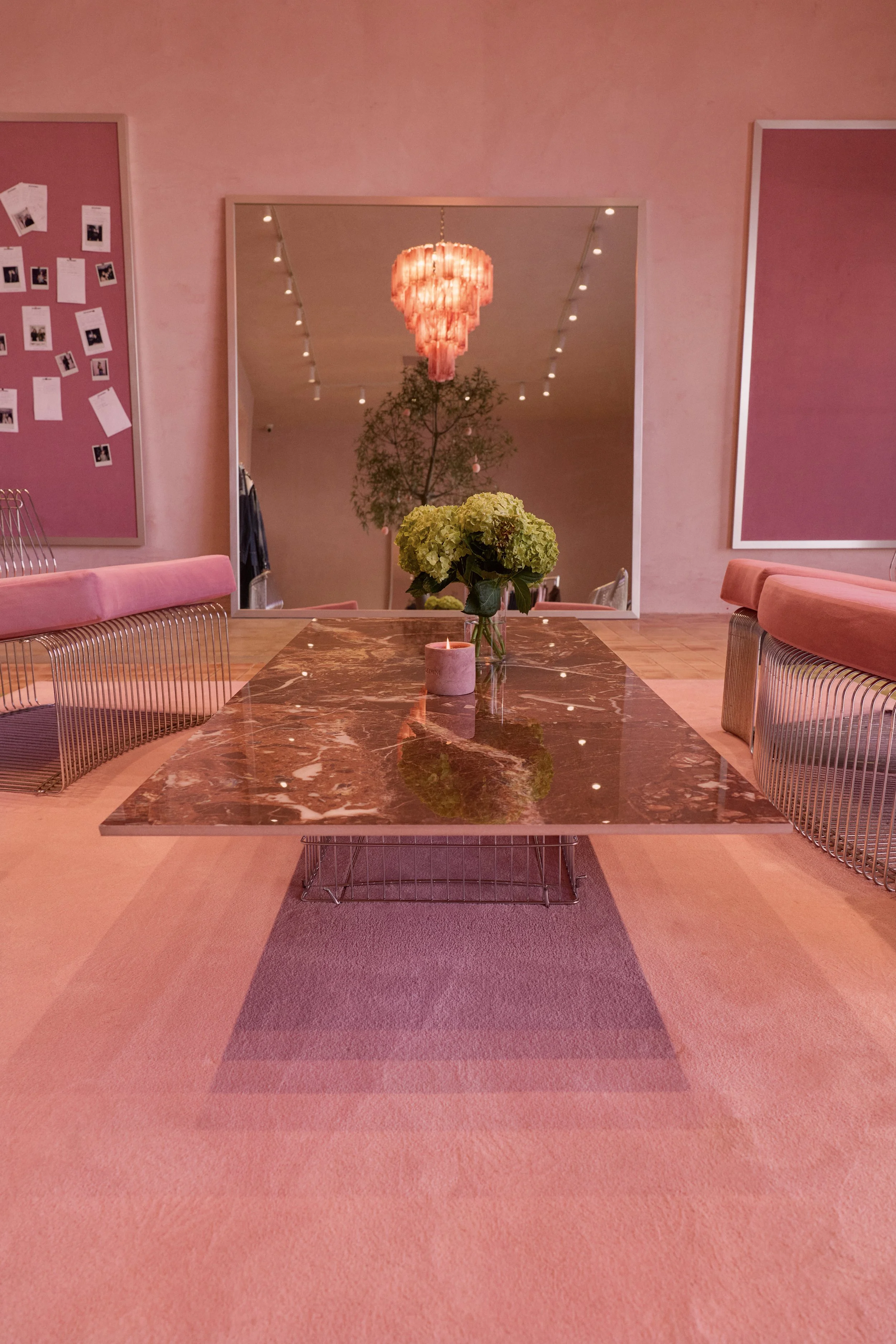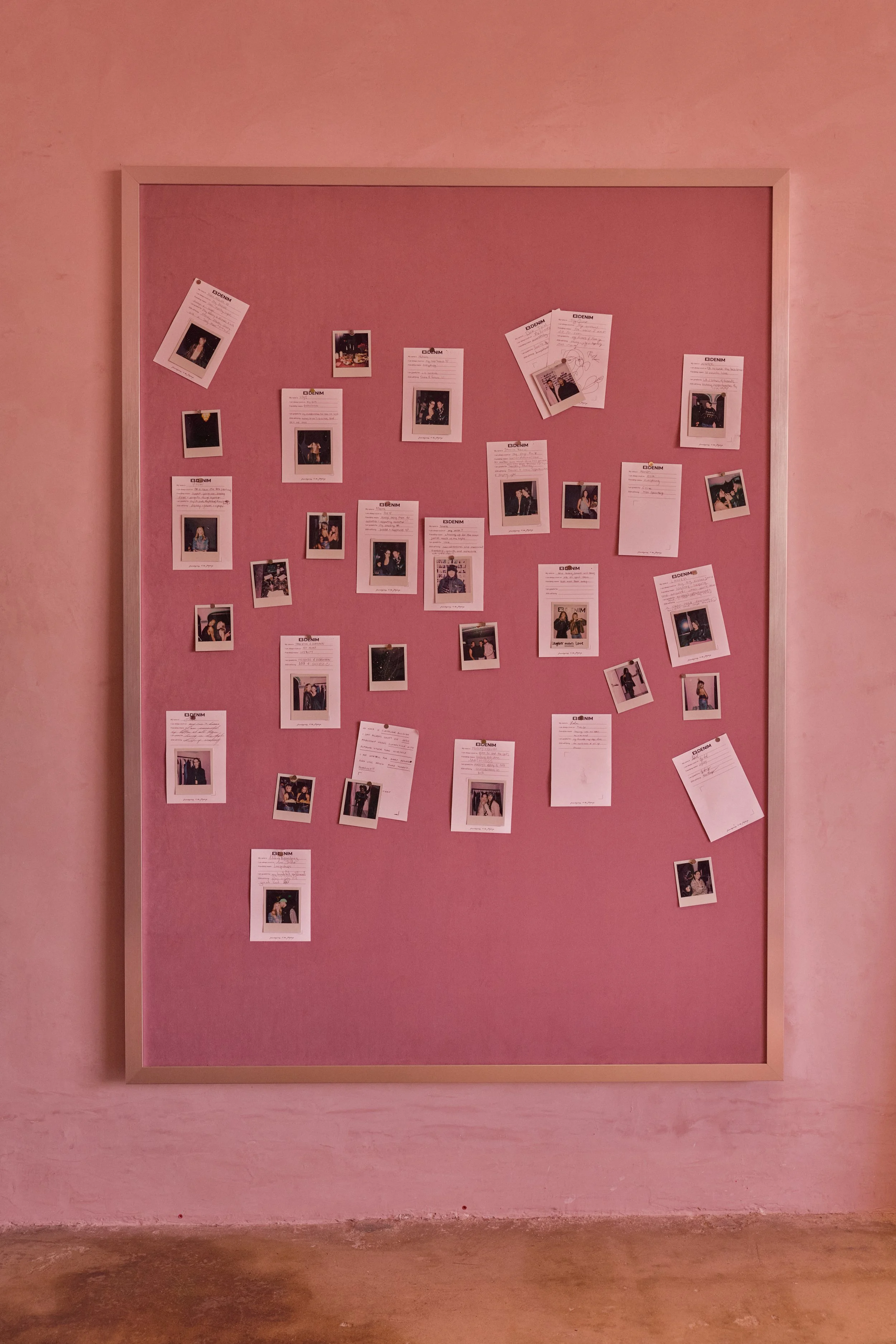 These design boards were created to bring a personal touch to the store. They’re meant to display images, patterns, and other current inspirations. Each board is made from a wood base wrapped in stretched velvet fabric and finished with a stainless-steel frame.